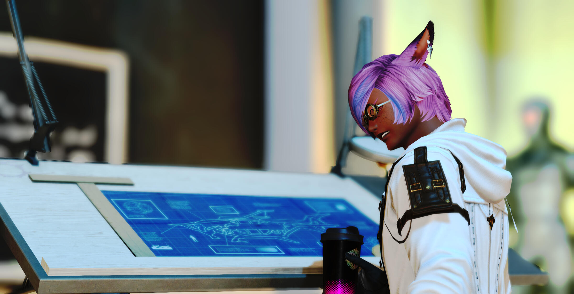 The lead engineer for The Steelgrin Sirens, he takes care of their airship 'The Melancholy Dreamer' as well as keeping the Sirens properly geared through their adventures. Any and all upgrades and augmentations go through him before implementation. Despite being more at home within the inner workings of computer modules and cybernetics, he can be a capable pilot if one is needed.A scholar with a hobby in sharpshooting, his penchant for Allagan devices and machinery landed him a nice cozy position of company bosun. Interested in rebuilding lost technology, he's all for the wild experimentation that accompanies Allagan designs. Unfortunately, his single minded acquisition of knowledge can sometimes get him and his companions into dangerous situations.A rebel and individualist, he is not a fan of playing by the rules. Not interested in becoming anyone’s hero, he avoids conflict that does not involve him directly. Opting for a shoot first policy, should someone attempt harm, there is no dancing around polite discourse or unnecessary platitudes. Abacus never goes looking for a fight, but he will absolutely finish one... with a gun.